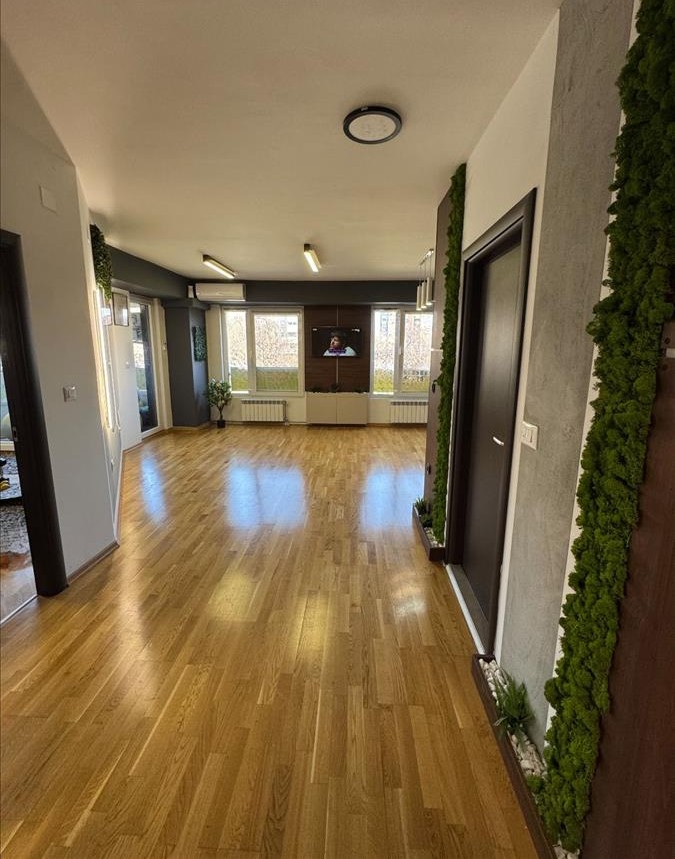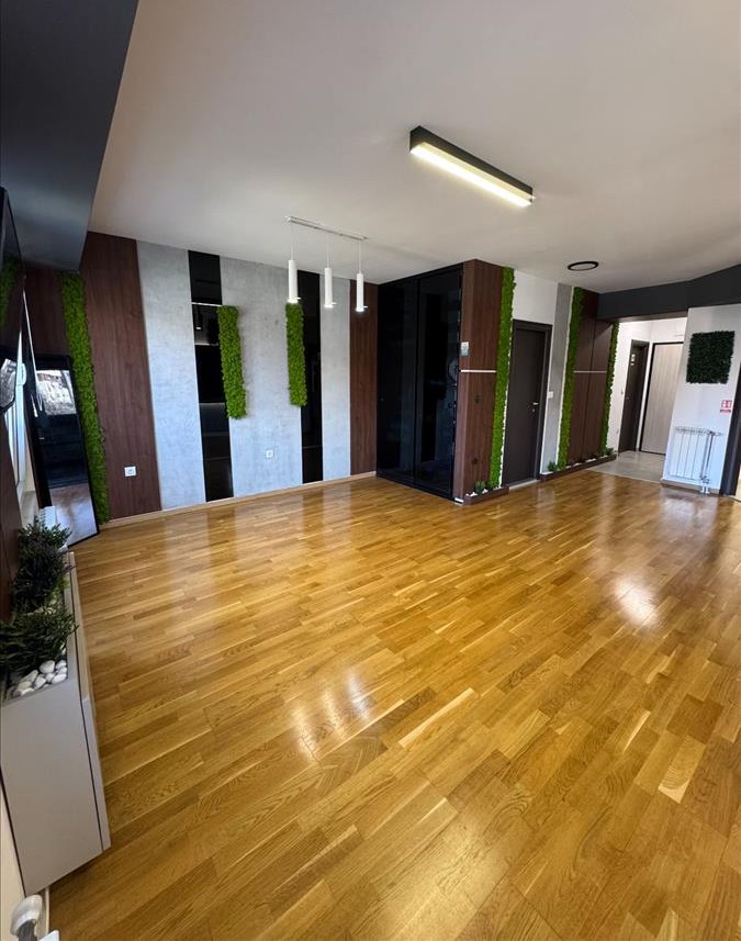 Се издава деловен простор 72м2 во Аеродром во зградата Порта Аеродром. Располага со две големи простории, една мала соба, 2 тоалети, тераса и надворешно приватно паркинг место со рампа. Се наоѓа на 1ви кат со лифт, има С/З ориентација и централно парно греење.