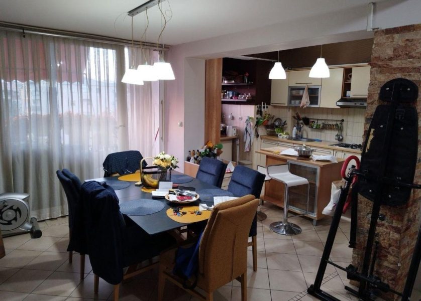 Се продава стан дуплекс од 90м2 во Мичурин, Аеродром наспроти Димитар Влахов. Првиот спрат е 51м2 и располага со дневна соба со трпезарија и кујна, тоалет и тераса од 6м2. Горниот спрат е 39м2 и располага со 3 соби и тоалет. Се наоѓа на 4ти кат со лифт, има западна ориентација, централно парно греење и подно греење. Паркинг простор слободен околу зградата.