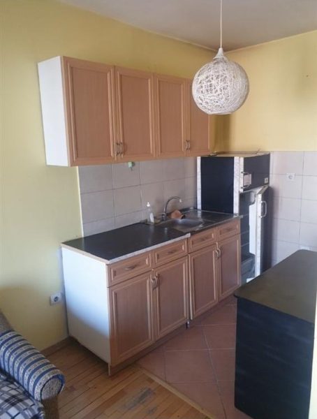 Се продава и издава гарсоњера 35м2 + 30м2 поткровје во Центар, наспроти Тутунски комбинат. Располага со дневна соба со кујна, спална соба која е одделена со шибер врата, тоалет и француски балкон. Се наоѓа на 5/5 кат со лифт, има западна ориентација и централно парно греење. Паркирањето е регулирано со зонско паркирање на ПОЦ.