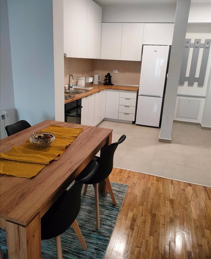 Се издава стан 64м2 во близина на претставништво Оса обезбедување во К. Вода. Станот располага со две спални соби, дневна, кујна, бања и тераса. Се наоѓа на 3кат со лифт и има греење на централно парно.