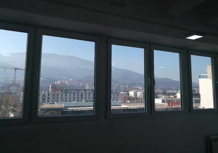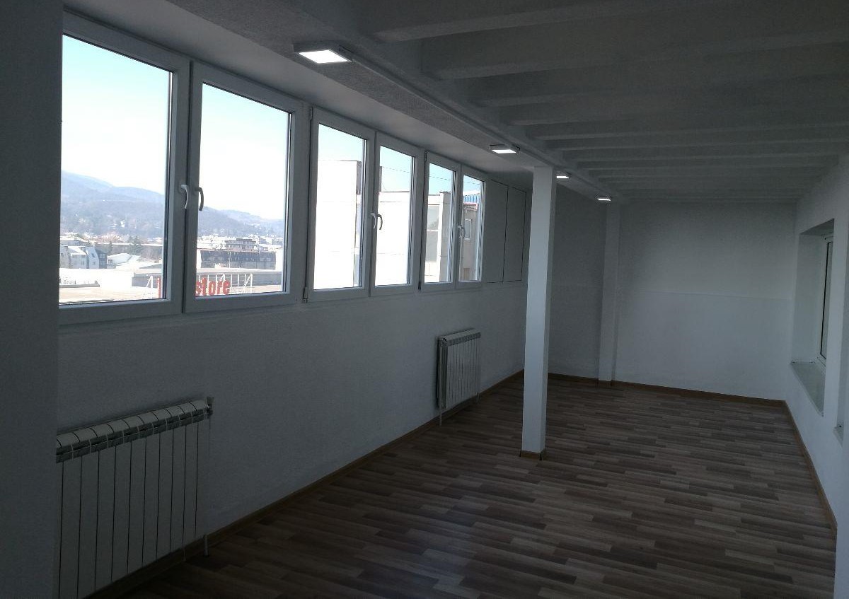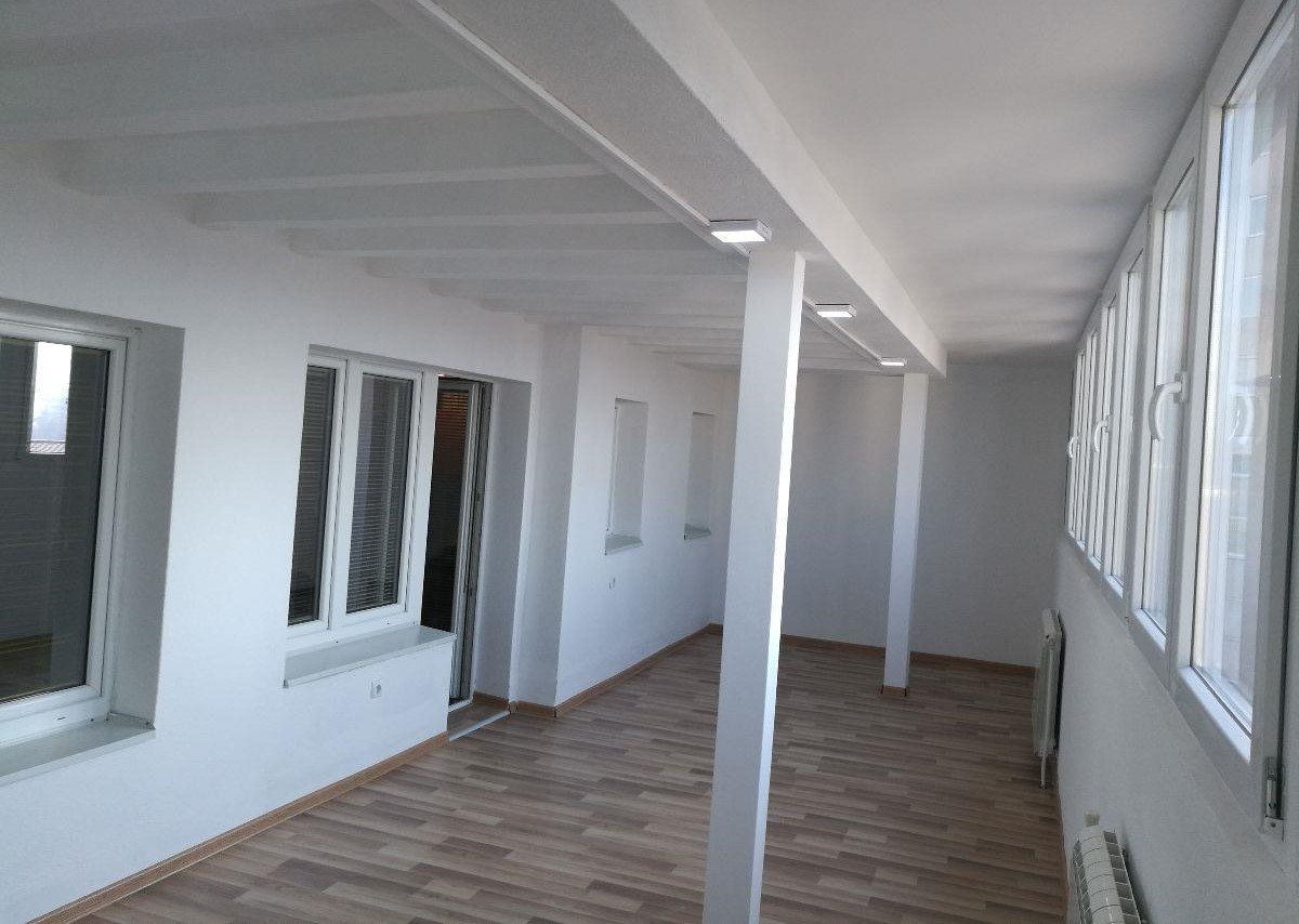 Се издава стан 78м2 во строг центар, наспроти Рамстор. Станот располага со еден отворен салон, две соби, тоалет, кујна, тераса од 7м2 и подрум од 6м2. Станот се наоѓа на 6/6 кат со лифт, има југо-западна и северна ориентација и централно парно греење. Паркирањето е регулирано со зонско паркирање на град Скопје и ПОЦ.