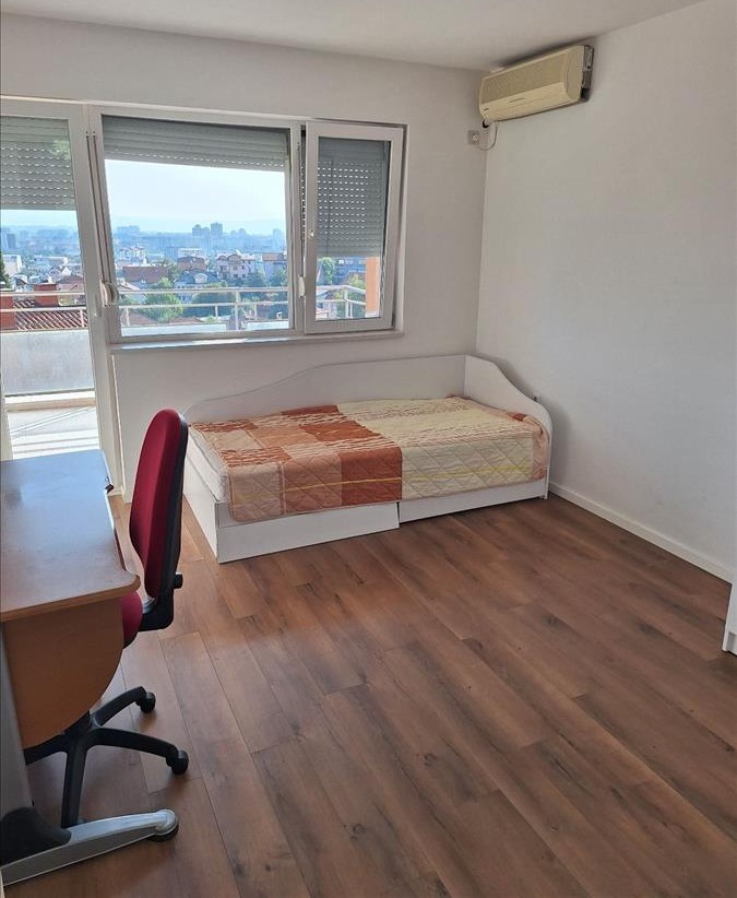Се издава стан од 110 м2 во Црниче во Кисела Вода. Станот располага со три спални соби, дневна,кујна, бања и две тераси. Се наоѓа на 2 кат без лифт и има греење на струја.