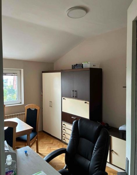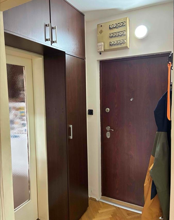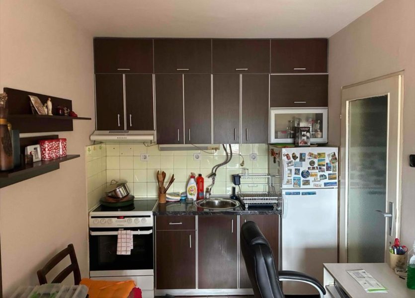 Се продава наместен стан 34м2 во Ново Лисиче во близина на Ројал Бургер. Станот располага со дневна соба, кујна, тоалет и тераса. Се наоѓа на поткровје, 9/9 кат со лифт, има северна ориентација и централно парно греење. Паркинг простор слободен околу зградата.