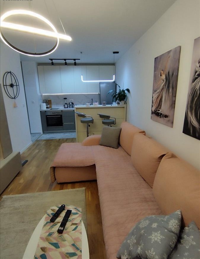 Се продава комплетно наместен стан 43м2 во нова зграда на Елена Лука во Кисела Вода. Станот располага со дневна соба со трпезарија и кујна, спална соба, тоалет и тераса. Се наоѓа на 4 кат со лифт, има С/И ориентација и централно парно греење. Дополнително со станот има и паркинг во гаража на -1 ниво.