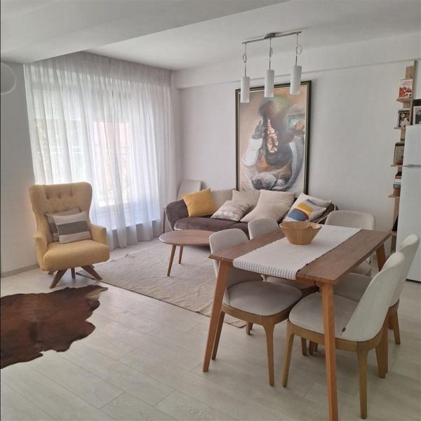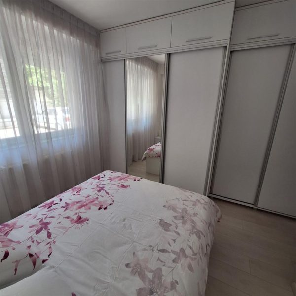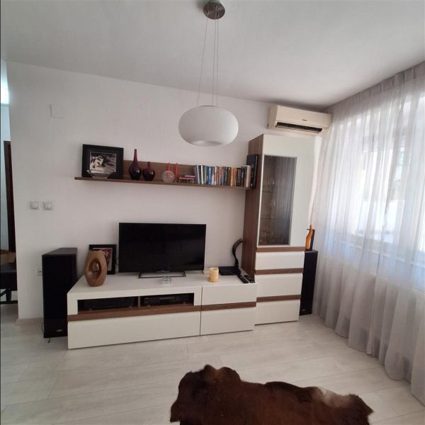 Се продава наместен стан 45м2 во Центар наспроти Fitness house. Станот располага со дневна соба со трпезарија и кујна, спална соба и тоалет. Се наоѓа на приземје, има источна и западна ориентација и централно парно греење. Дополнително со станот има и подземно гаражно место.
