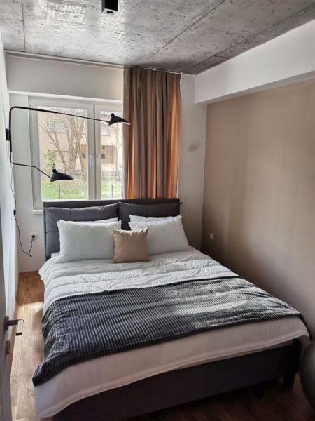 Се продава комплетно модерно уреден стан 46м2 во Мичурин, Аеродром. Станот располага со дневна соба со кујна, спална соба и тоалет. Се наоѓа во нова зграда на приземје, има источна ориентација и централно парно греење. Паркинг простор слободен околу зградата.