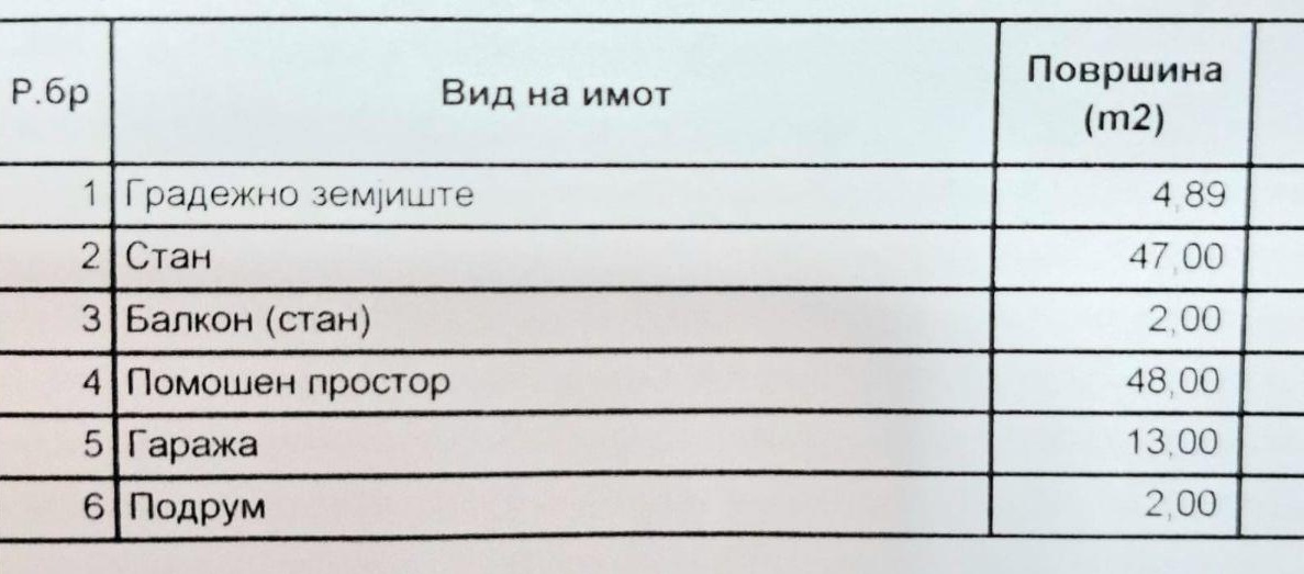 * станот има имотен лист за сите наведени површини