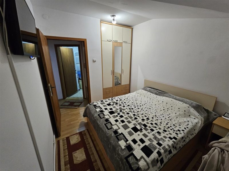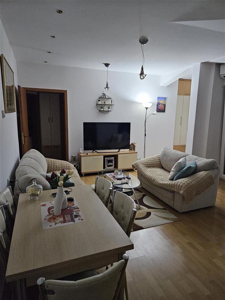 Се продава наместен стан 49м2 во Аеродром наспроти Три Бисери. Станот располага со дневна соба со трпезарија и кујна, спална соба, тоалет и тераса од 2 м2. Се наоѓа на 5/5 кат без лифт, има С/И ориентација и сопствено парно на струја. Паркирањето е регулирано со зонско паркирање.