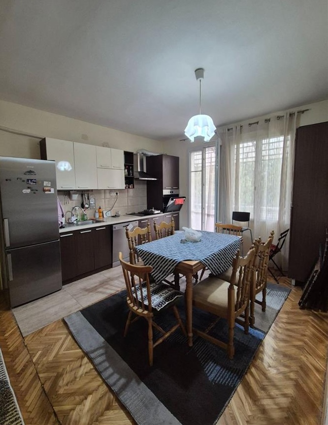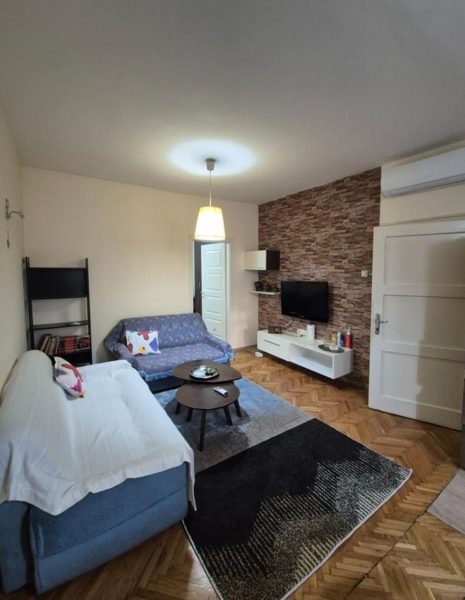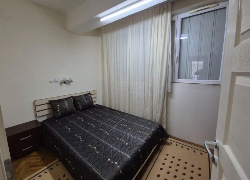 Се продава стан 50м2 во Центар до клуб на пратеници. Располага со една спална,кујна, дневна, тоалет и тераса. Има греење на струја и источна ориентациа.