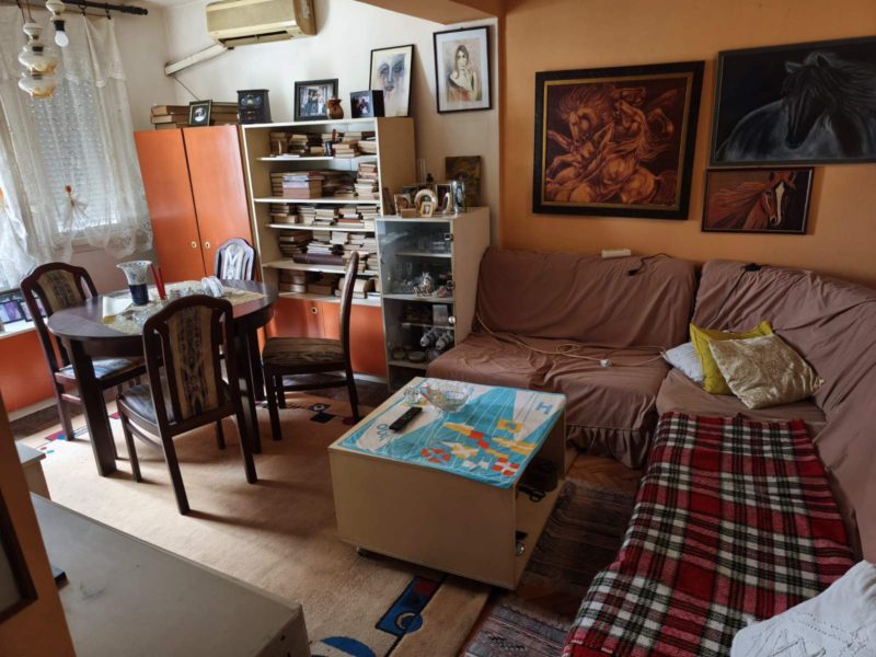 Се продава стан 50м2 во Кисела Вода позади општината. Станот располага со дневна соба, трпезарија и кујна, спална соба, голема затворена тераса и тоалет. Станот се наоѓа на 3/5 кат без лифт, има југо-западна ориентација и греење на струја. Дополнително со станот има и гаража.