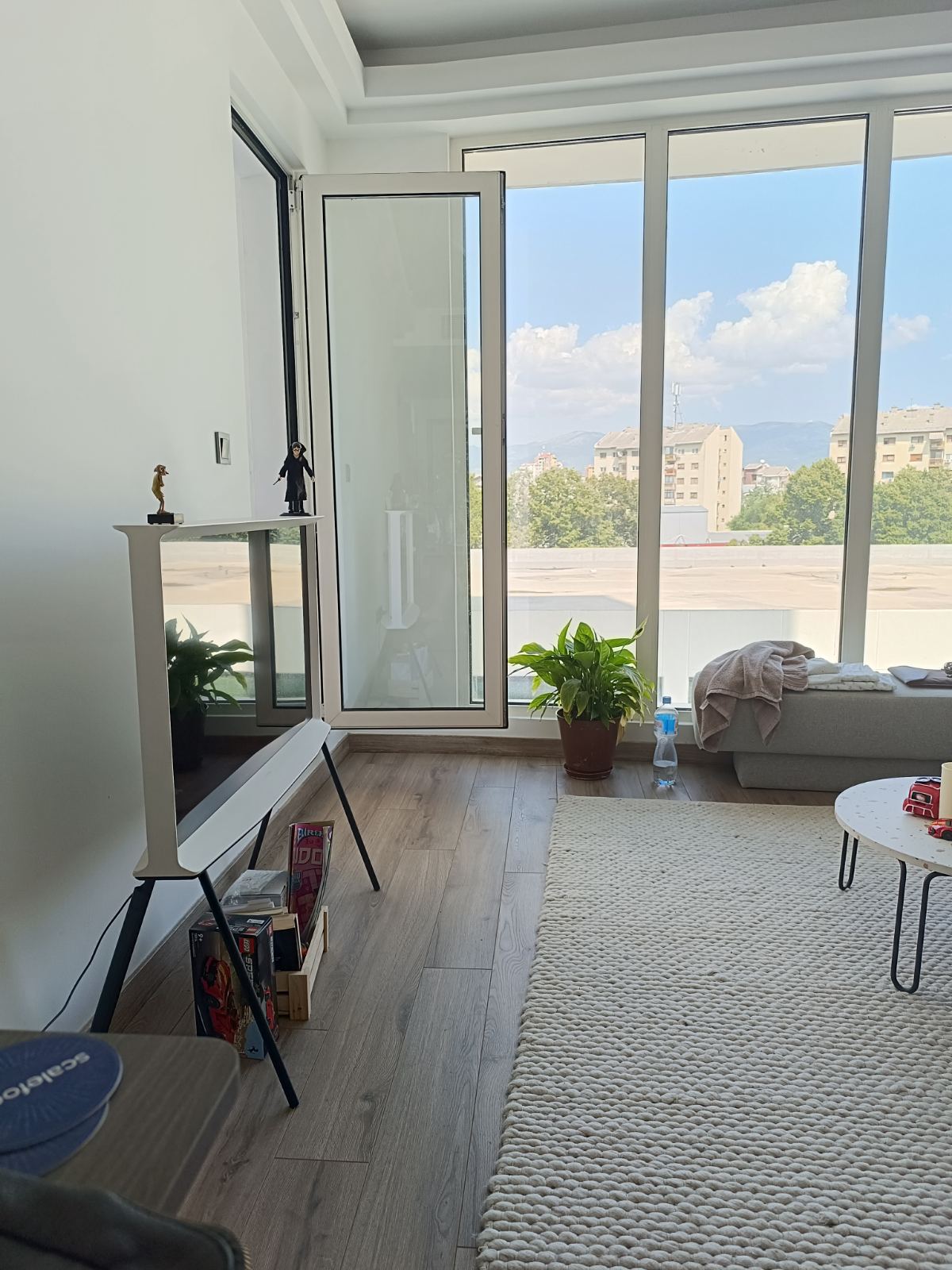 Се издава наместен стан 51м2 во Џевахир Кула Ц. Станот располага со дневна соба со кујна, спална соба, тоалет, тераса од 3м2 и две паркинг места во гаража на -2 ниво. Станот се наоѓа на 3ти кат со лифт, има северо-источна ориентација и греење и ладење со инвертер.