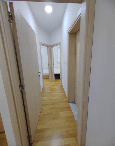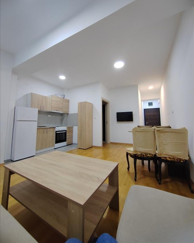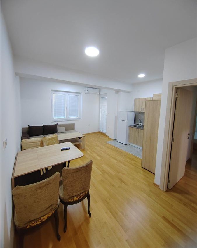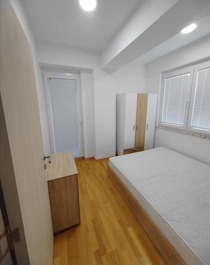Се издава наместен стан 52м2 во нова зграда во Кисела Вода во близина на ОСА обезбедување. Станот располага со дневна соба со трпезарија и кујна, 2 спални соби, тоалет и тераса. Станот се наоѓа на 4/4 кат со лифт, има Ј/З ориентација и греење и ладење на струја со клими. Паркинг простор околу зграда.