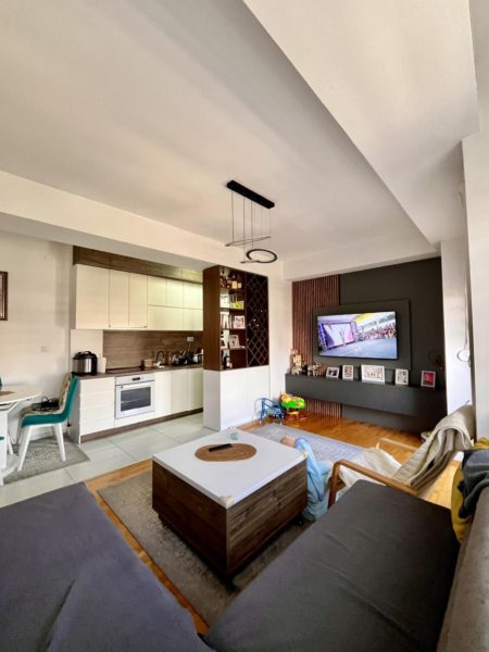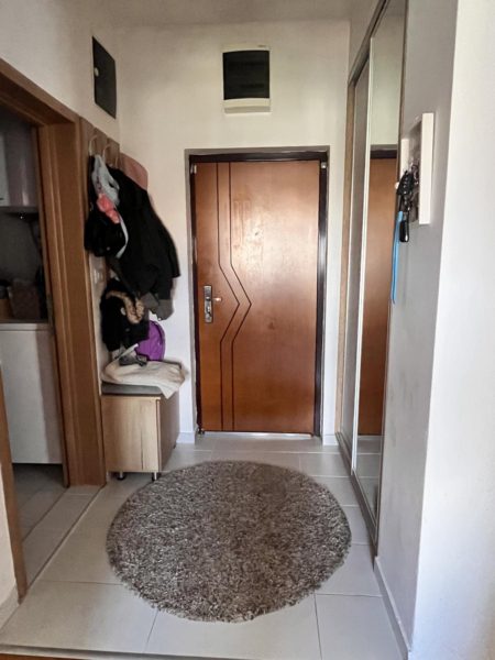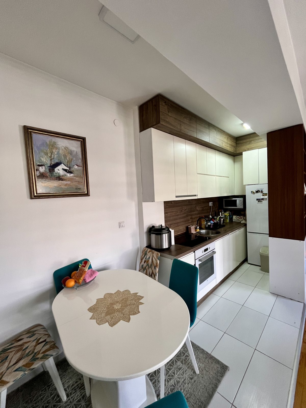 Се продава комплетно наместен стан 55м2 во понова зграда во Аеродром кај ресторан Дион. Станот располага со дневна соба со трпезарија и кујна, спална соба, детска соба, тоалет и мала тераса. Се наоѓа на 5/7 кат со 2 лифта, има северна ориентација и греење со сопствено парно на струја и инвертер клима. Станот е реновиран 2024 година. Паркинг простор слободен пред зградата.