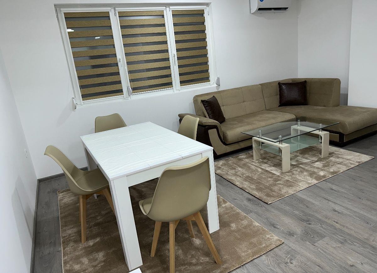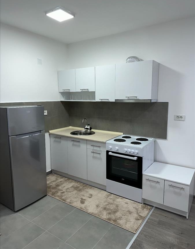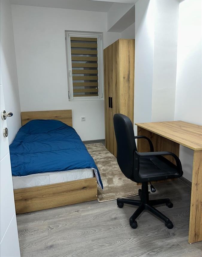 Се издава комплетно наместен стан 55м2 во близина на Мерцедес и ФОН. Станот располага со дневна соба со трпезарија и кујна, спална соба, детска соба, тоалет и тераса. Се наоѓа на 2/4 кат со лифт, има јужна ориентација и греење и ладење на струја со инвертер клими. Паркинг простор слободен околу зградата.