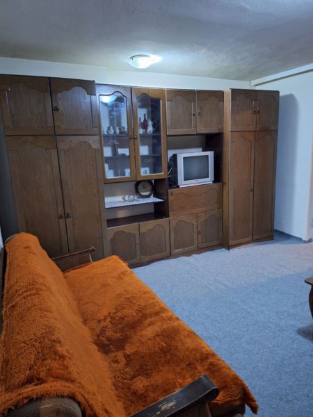 Се издава стан 57м2 во Автокоманда на улица Јани Лукровски, веднаш кај надвозникот. Станот располага со дневна соба, кујна, спална соба, тоалет и тераса. Се наоѓа на 4ти кат без лифт и има греење на струја. Паркинг простор слободен околу зградата.
