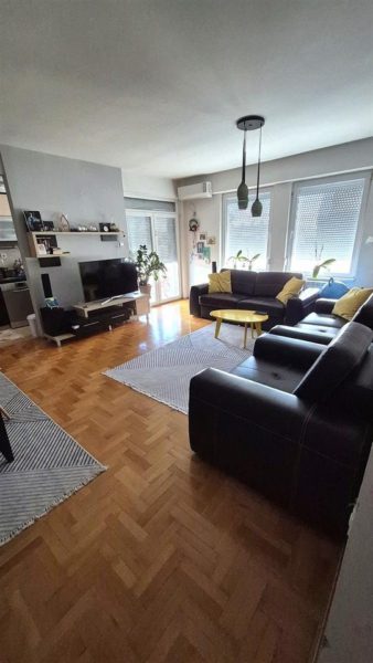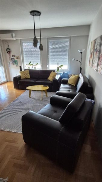 Се продава опремен стан 57м2 во Ново Лисиче кај последна 5ка. Станот располага со дневна соба со трпезарија и кујна, спална соба, тоалет и тераса. Се наоѓа на 7/7 кат со лифт, има источна ориентација и централно парно греење. Паркинг простор слободен околу зградата.