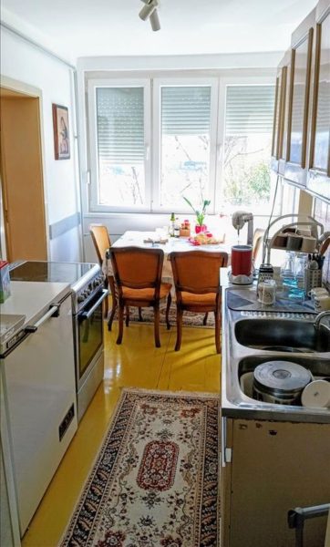 Се продава стан 59м2 во Аеродром позади Скопјанка. Станот располага со дневна соба, кујна, 2 спални соби, тоалет, тераса и подрум од 10м2. Станот се наоѓа на 4/5 без лифт, има југо-западна ориентација и централно парно греење. Паркинг простор слободен околу зградата.