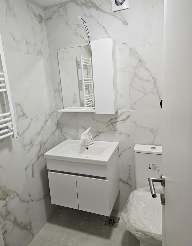Се продава нов невселуван стан 61м2 во Ќерамидница спроти East Gate Mall. Располага со две спални, кујна, дневна, тоалет, гостински тоалет и тераса. Има греење на струја и С/И ориентација.