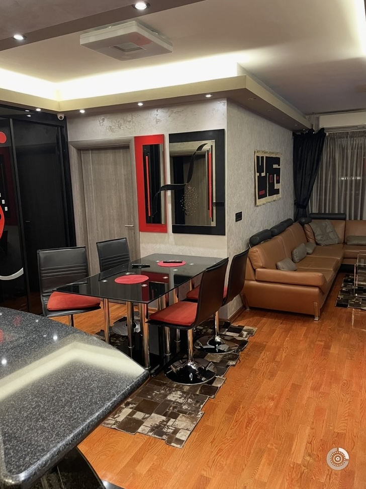 Се продава наместен стан 62м2 во Центар во зградата на Луна корпорација во близина на Соборна црква. Станот располага со една спална, кујна, дневна, тоалет и тераса. Има централно парно греење и С/И ориентација.