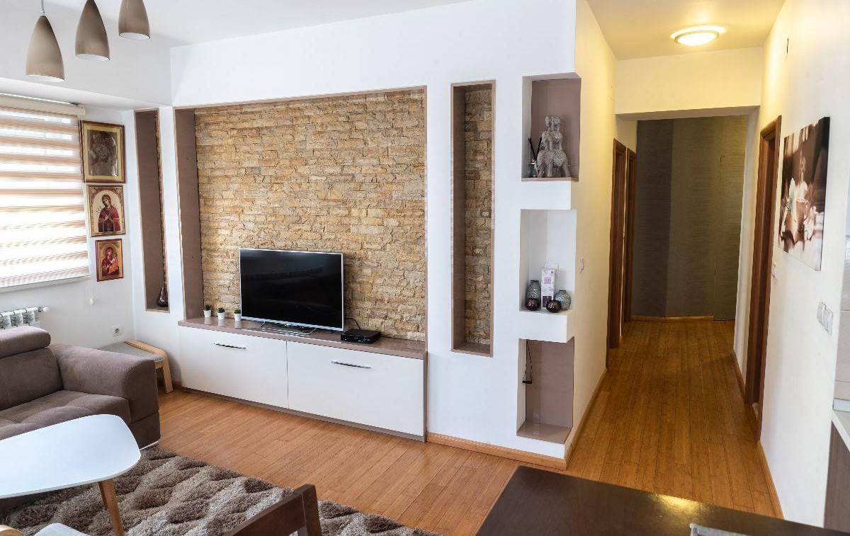 Се продава модерно комплетно уреден стан 63м2 во зграда на Настел во Ново Лисиче во близина на Рамстор и бензиската Мак Петрол. Станот располага со дневна соба со кујна и трпезарија, две спални соби, тоалет, ходник со остава и тераса. Станот се наоѓа на 6/7 кат со лифт, има С/И ориентација, централно парно греење и инвертер клима. Дополнително со станот има и надворешно паркинг место.