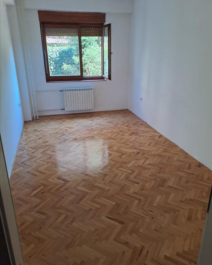 Се продава празен стан 61м2 во Реонски Центар, Ново Лисиче. Станот се наоѓа на приземје и располага со 3 соби, ходник, тоалет, мала заградена тераса, подрум 6m2 и ограден двор 98m2. Станот има југо-источна ориентација и централно парно греење. Паркинг простор слободен околу зградата.