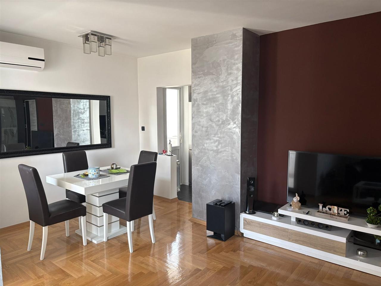 Се продава стан 79м2 во близина на бензинска пумпа Макпетрол во Аеродром. Станот располага со две спални , дневна, кујна, трпезарија, гостински тоалет, бања и две тераси. Се наоѓа на 3 кат со лифт и има греење на централно парно.Ориентација југозападна.