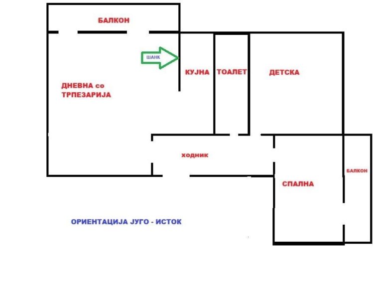 Се продава стан 82м2 во Ѓорче Петров во близина на ООУ„Мирче Ацев“. Станот располага со две спални, кујна, дневна, тоалет, 2 тераси од 2м2 и 8м2. Има греење на струја со клима и сопствено парно и Ј/И ориентација.